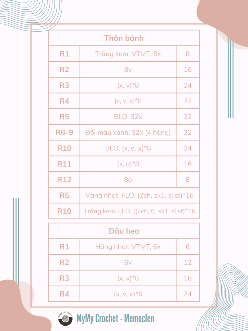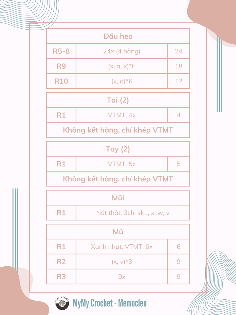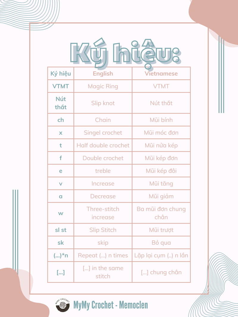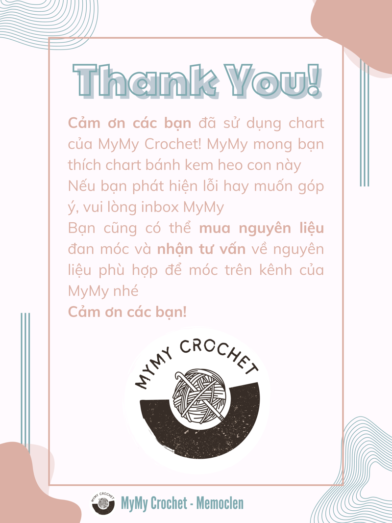 Nguyên liệu: về cơ bản, bạn có thể sử dụng bất cứ loại len, màu sắc nào hiện có. Vì ko có chart cố định cho một loại len. Nhưng lưu ý rằng kích thước sản phẩm sẽ thấy đổi theo kích thước loại len và size kim móc. Bạn có thể mua set nguyên liệu trên website này hoặc liên hệ với mình qua Facebook hoặc Shopee nha. Các bạn nếu đang băn khoăn không biết nên chọn loại len nào để móc thì đây là vài gợi ý của MyMy về loại len nha: