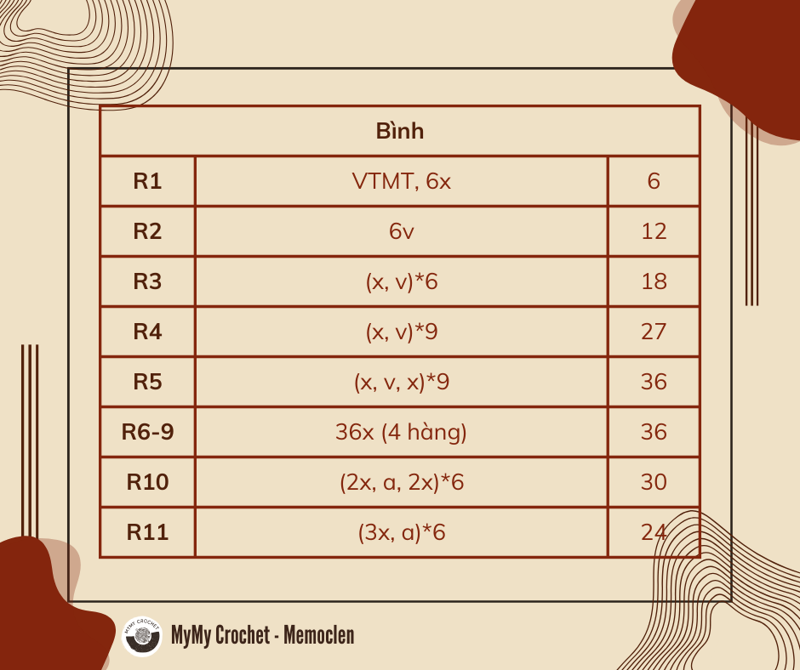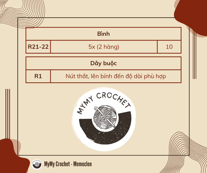 Bạn muốn tự tay tạo một món đồ trang trí mang lại may mắn và bình an cho gia đình? Chart "Bình Hồ Lô Hạnh Phúc" sẽ giúp bạn biến những sợi len thành một chiếc hồ lô nhỏ xinh, mang theo ý nghĩa của sự trường thọ, tài lộc. Công thức này rất dễ thực hiện, phù hợp với mọi người, và đặc biệt là món quà ý nghĩa trong dịp năm mới hay lễ tân gia. Hãy cùng móc chiếc hồ lô này để tô điểm cho không gian sống và gửi gắm những lời chúc tốt đẹp nhất.