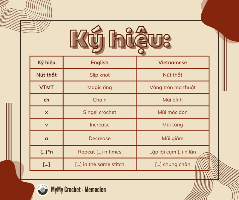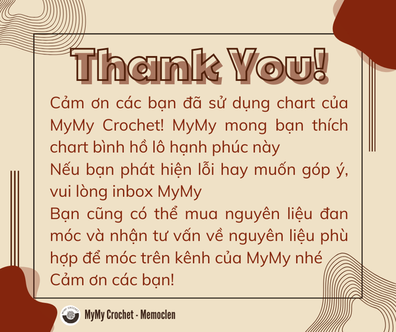 Nguyên liệu: về cơ bản, bạn có thể sử dụng bất cứ loại len, màu sắc nào hiện có. Vì ko có chart cố định cho một loại len. Nhưng lưu ý rằng kích thước sản phẩm sẽ thấy đổi theo kích thước loại len và size kim móc. Bạn có thể mua set nguyên liệu trên website này hoặc liên hệ với mình qua Facebook hoặc Shopee nha. Các bạn nếu đang băn khoăn không biết nên chọn loại len nào để móc thì đây là vài gợi ý của MyMy về loại len nha: